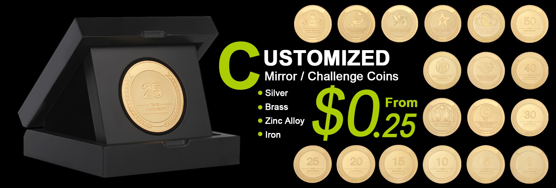 Moneda de espejo de material de latón de color oro y plata galvanizada doble personalizada