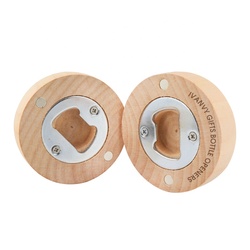 Abrebotellas de madera con imán, Logo personalizado, redondo, barato, 2,56 pulgadas